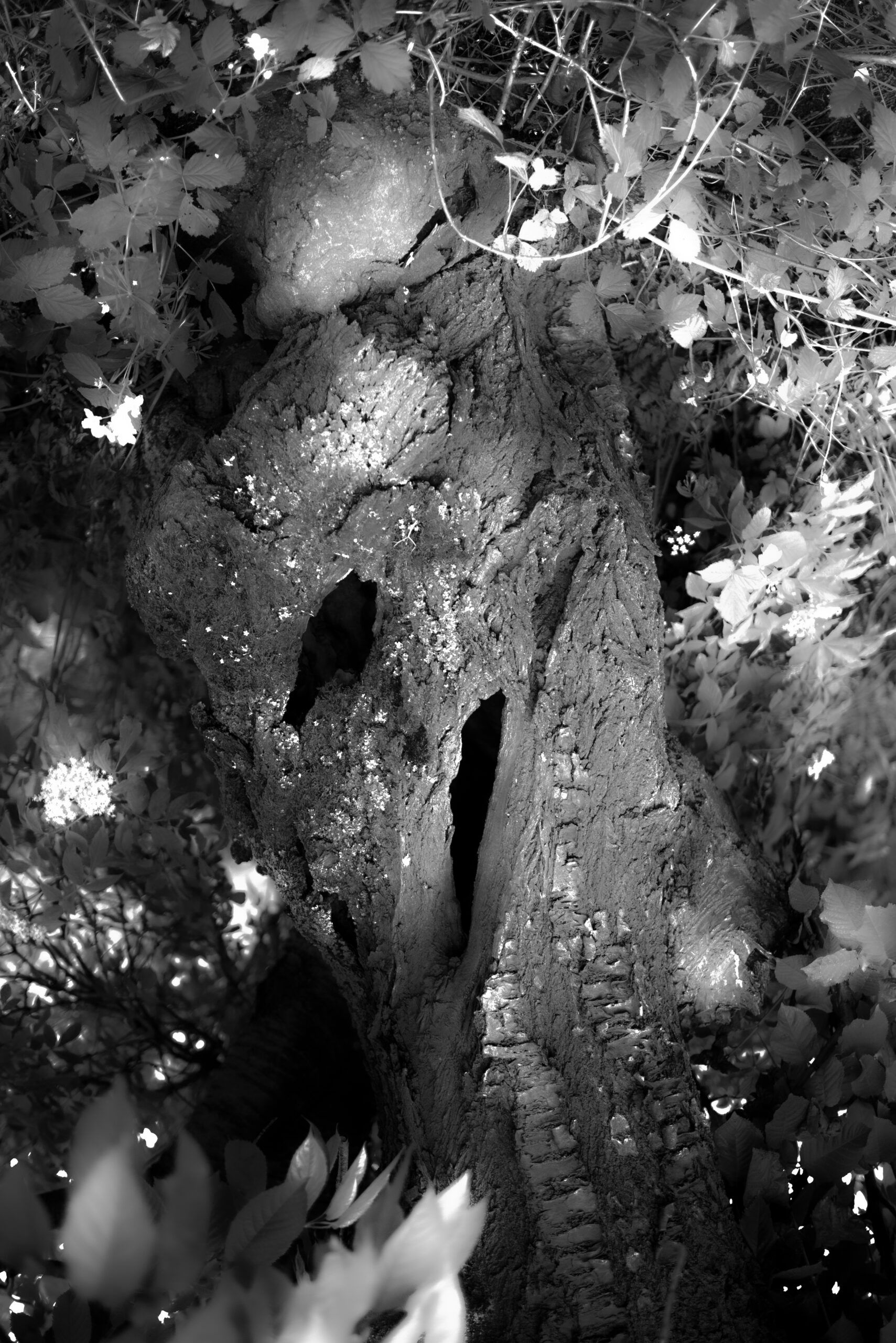 Punktem wyjściowym w poszukiwaniach twórczych były dla mnie słowa zapisane w szkicowniku – Duchy podobne roślinom. Formy, nad którymi pracowałem miały nie tyle „naśladować rośliny” co wkraść się w ich istnienie – poprzez różne sposoby myślenia, wielozmysłowe doświadczanie i obcowanie z nie-ludzkimi innymi. Proces artystyczny i badawczy ma zdolność wnikania w szczeliny, a materializacja dzieła sztuki często bywa szczeliną samą w sobie. Podobnie jak kiedyś historia sztuki określała obraz malarski oknem czy zwierciadłem ku tajemnicy.