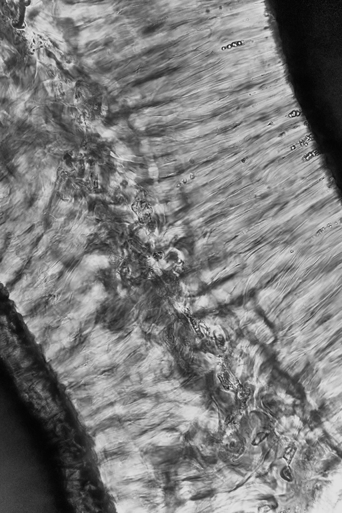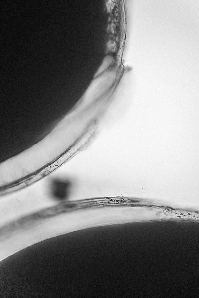 Przychodzi mi na myśl dziwna puenta. Czy spoglądanie w oko mikroskopu nie ma w sobie czegoś w rodzaju cudu? Czasem dotyka nas szczególny rodzaj przeżycia, dreszcz czy impuls – dziecięcego zdziwienia. Czuję się wtedy jak gdybym ocknął się z długiej hibernacji. Jako cud postrzegam możliwość zagłębiania się we wszelki byt jaki ulega naszym próbom wdarcia się w niego. Posępna koherencja materii i wiedzy. Bardzo często zbadanie czegoś jest równoznaczne z jego uszkodzeniem, nacięciem czy nakłuciem. To dziwny splot potrzeb i konsekwencji. Jaki wpływ na to co widzimy mają wyuczone informacje, pozbawione żywego doświadczenia? Czy częściej nie jest tak, że wiemy, a nie widzimy? Gdzie w takim razie jest granica między wiedzą, a wiarą w informacje? Czy nie przypomina to mentalnej infekcji? Jakie konsekwencję to ze sobą niesie?